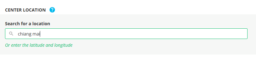 CENTER LOCATION 아래의 초록색 글자 'Or search for a location'을 클릭해준다.