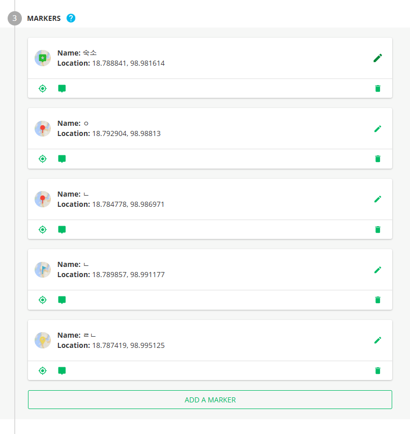 ADD A MARKER 버튼을 클릭하여 원하는 대로 마커들을 찍어준다.