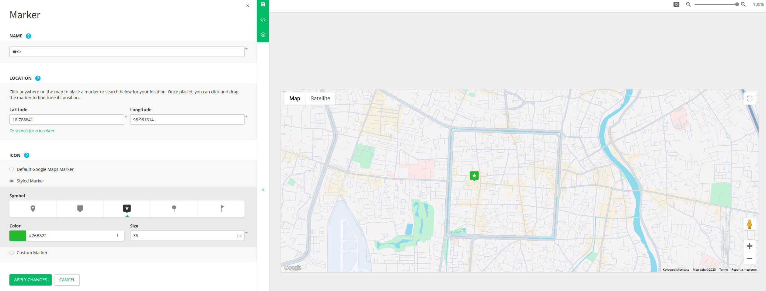 그리고 좌측 하단의 APPLY CHANGES를 클릭하여 추가된 마커의 스타일을 적용해준다.